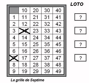 Le jour où Septime gagna en trouvant les six bons numéros, un de ses amis ayant vu le tirage lui dit : " je ne me souviens plus des numéros sortis, mais je me rappelle avoir remarqué qu'il s'agit de six nombres premiers " ; Septime se prit alors à espérer : il savait en effet qu'il avait une chance sur N de l'emporter, et que N était maintenant beaucoup plus petit que 13 983 816 (nombre de combinaisons de six numéros quelconques parmi 49).