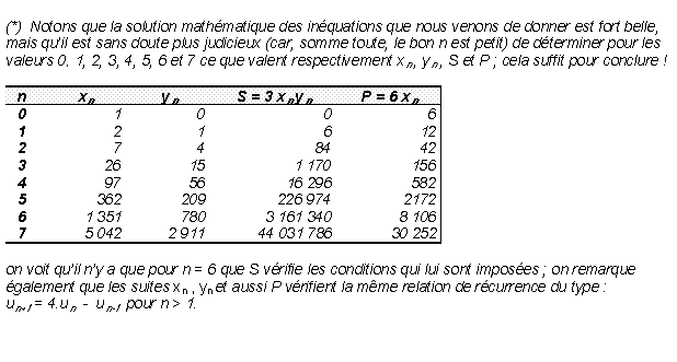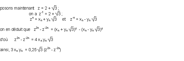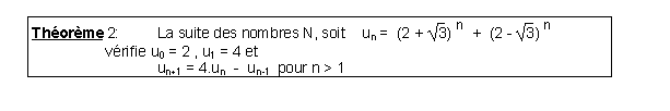 Il s’agit d’une équation diophantienne particulière, dite de Pell-Fermat, dont les solutions sont les couples (xn ; yn) tels que