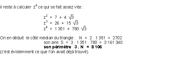 On a donc N = 2 702 m ; d’où le périmètre cherché : 2.p = 8 106 m.