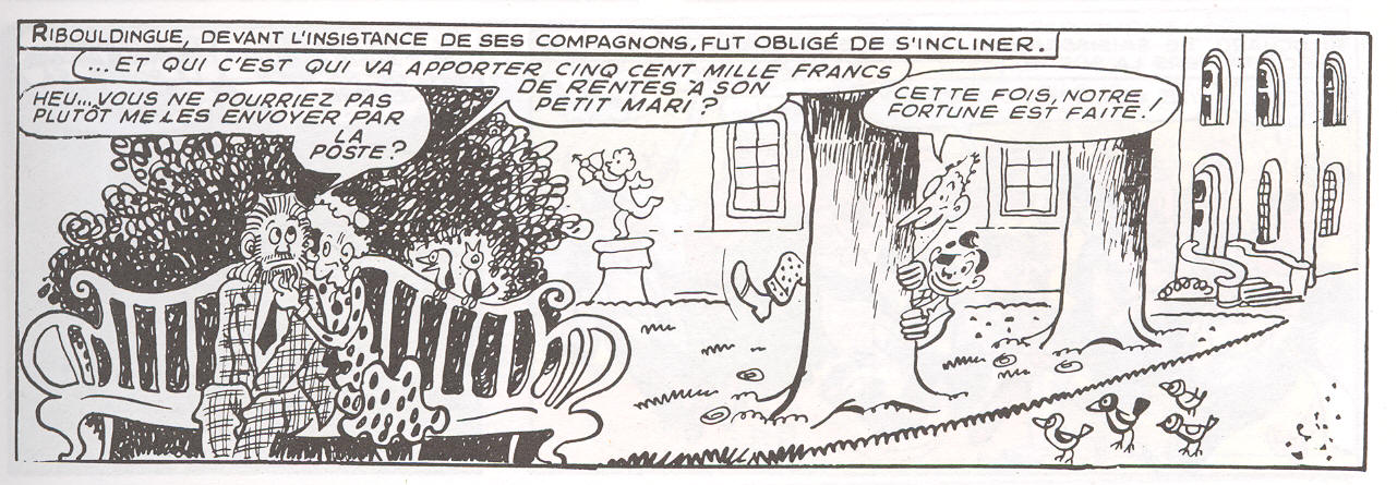 Lorsqu’il créa les Pieds Nickelés au début du siècle dernier, Louis FORTON ne se doutait pas que cent ans plus tard ses personnages : Ribouldingue le barbu, Filochard le borgne et Croquignol l’homme au long nez, seraient les héros d’un devoir de mathématiques ! On les rencontre pour la première fois dans l’Epatant en 1908, quelques mois après la mort d’Alfred Jarry ; Les Pieds Nickelés survivront à Louis FORTON, décédé en 1934, grâce à PERRE, puis BADERT, et enfin René PELLOS qui de 1948 à 1981 dessinera de nombreux épisodes des aventures de ces trois sympathiques crapules.